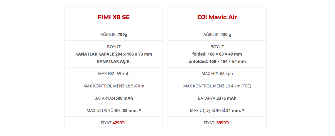 Bir ön girişten sonra XIAOMI FIMI X8 SE vs DJI Mavic Air kıyaslamasına başlayabiliriz… Umarım faydalı olur.